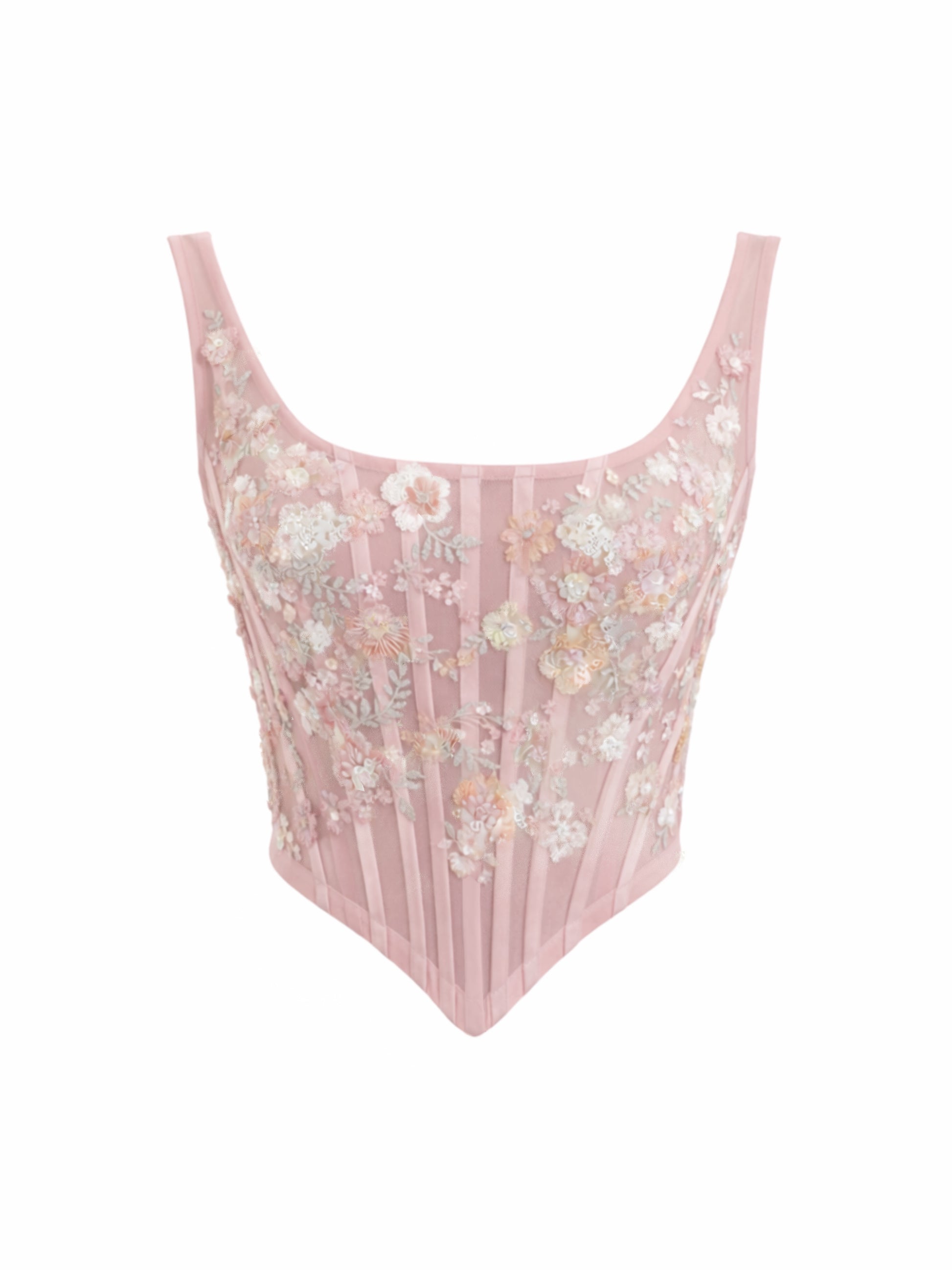 Cuenta con varillas internas, transparencias, copas nude incorporadas y cintas ajustables en la espalda para un ajuste personalizado.