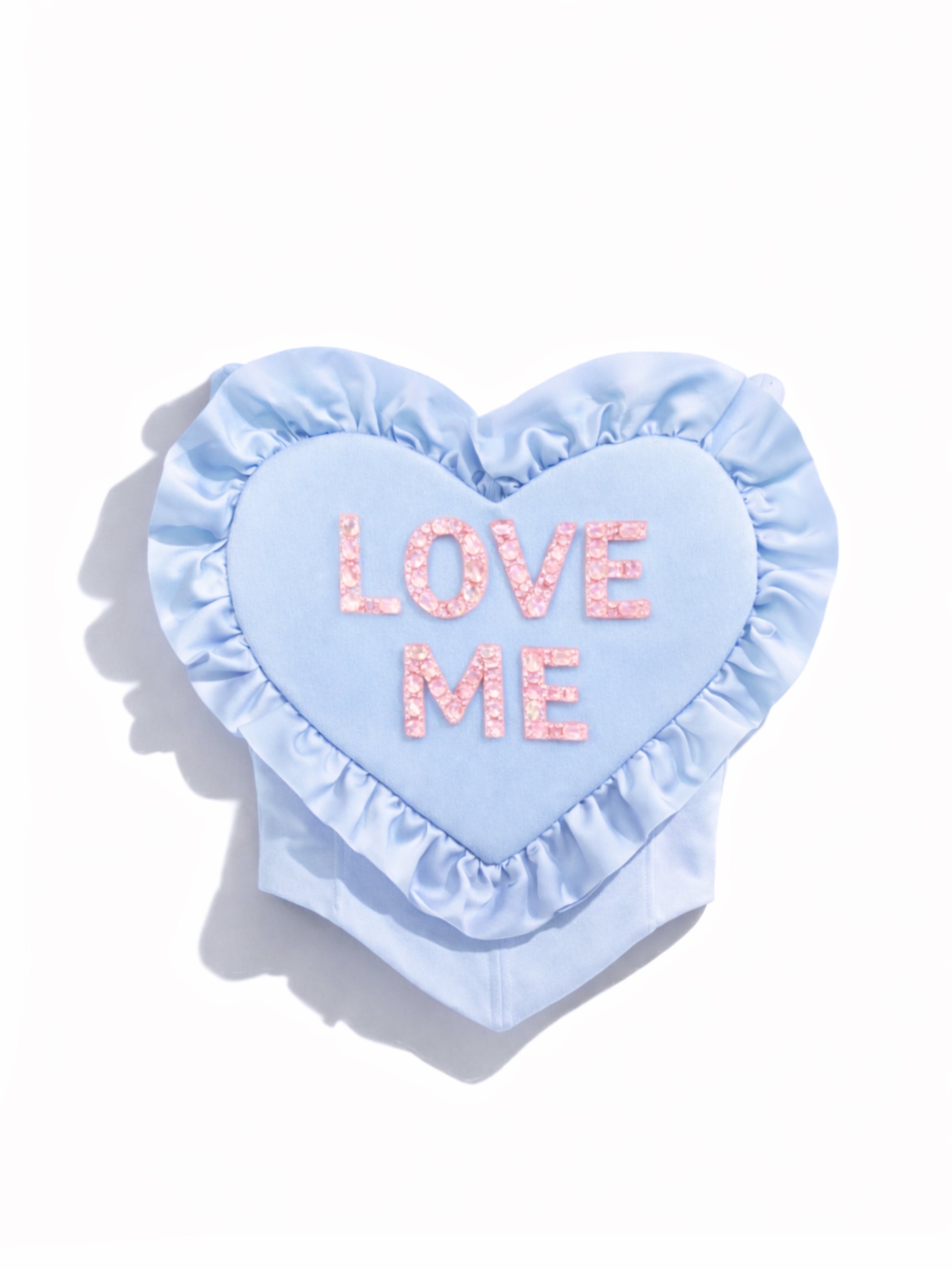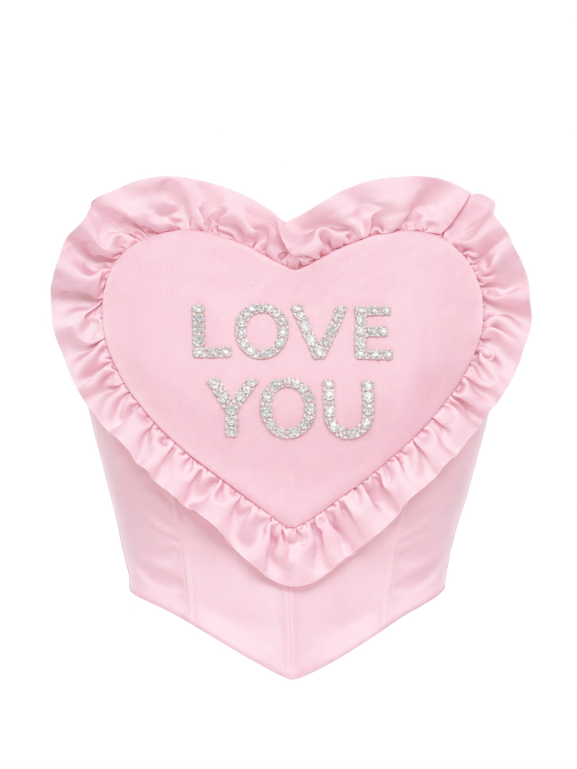 Top strapless de silueta corsetera con corazón al frente, diseñado como una pieza versátil y transformable.