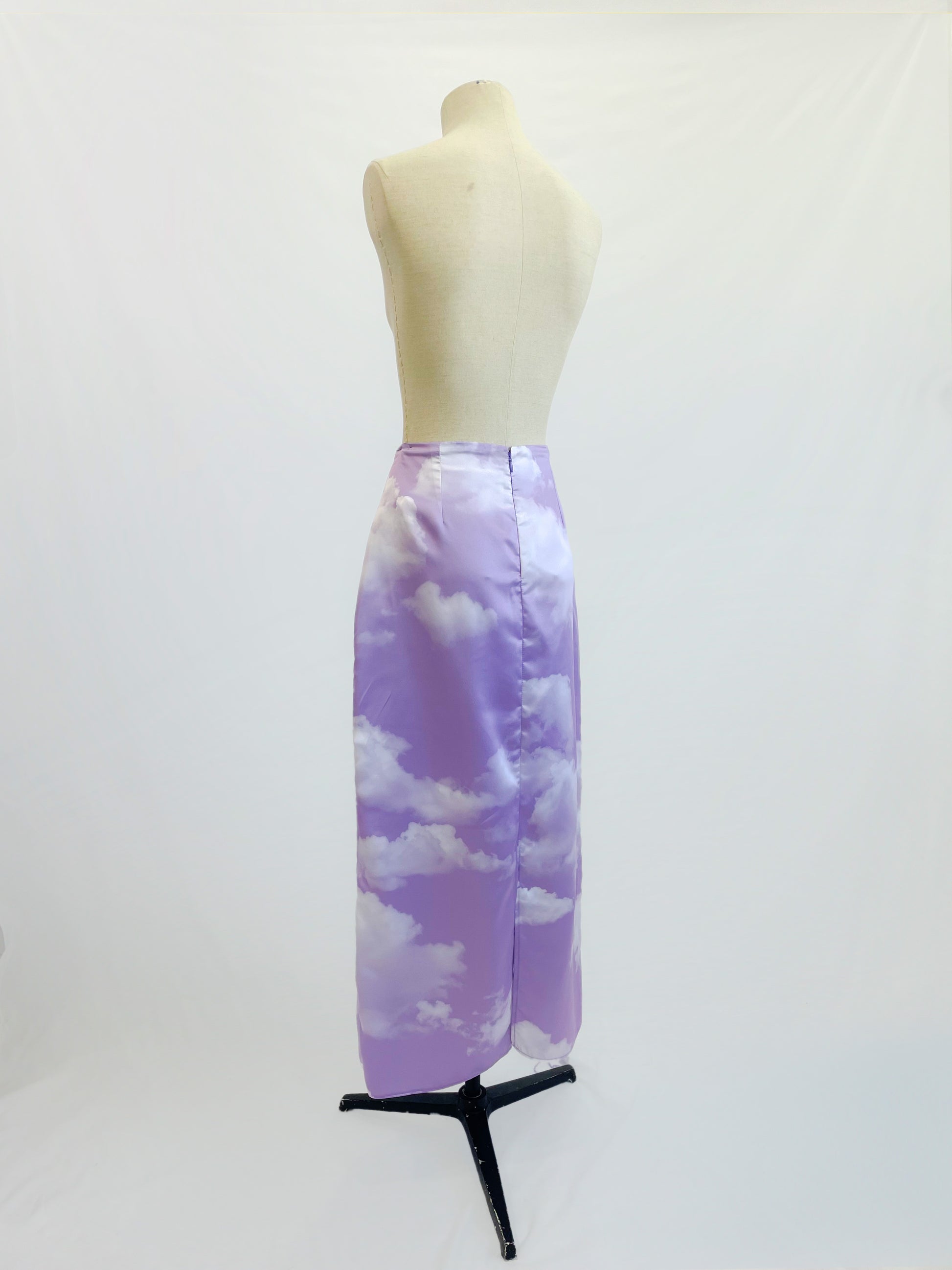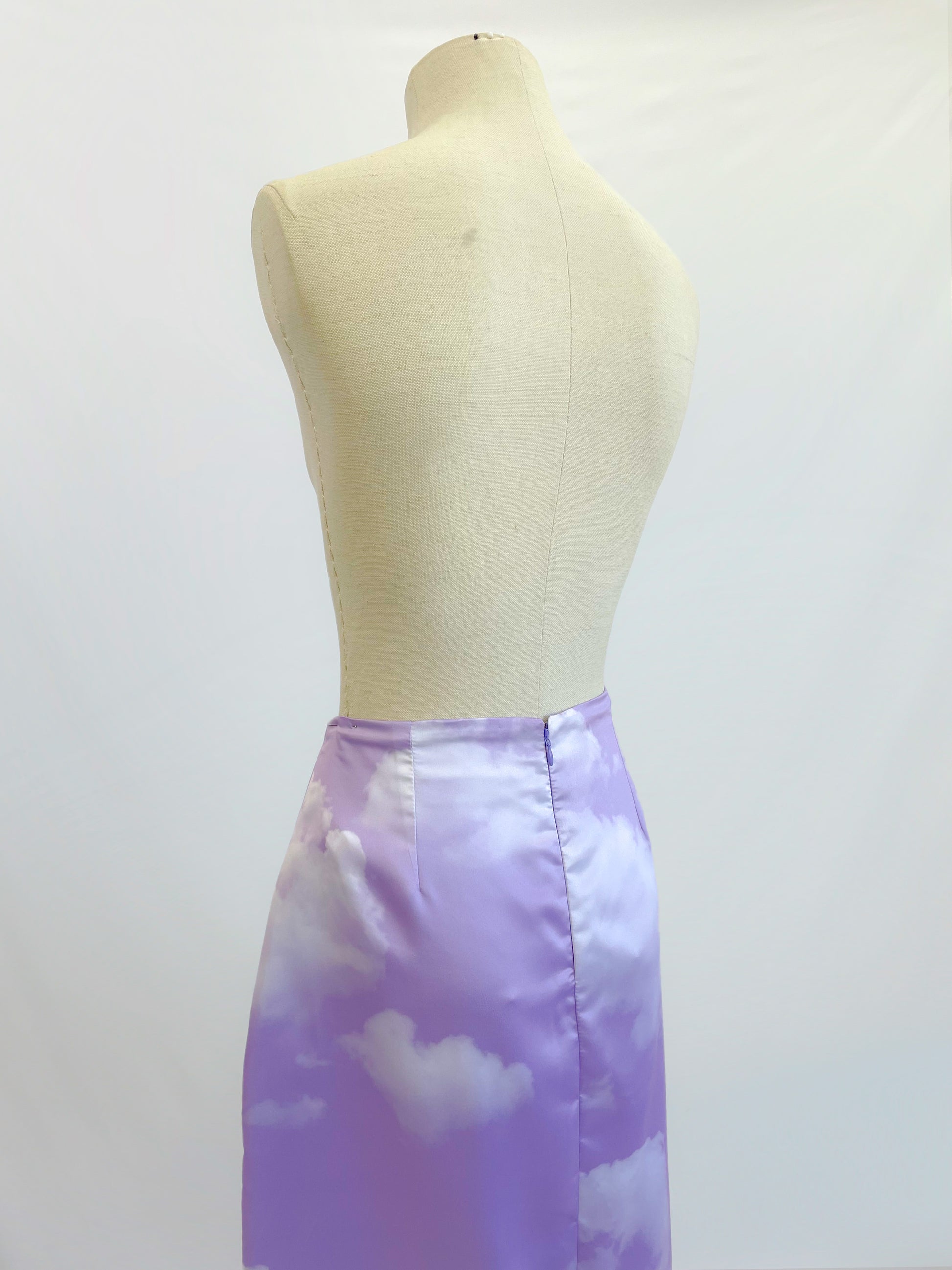 Straight cut with an invisible zipper at the back and a back slit for greater comfort while walking.
