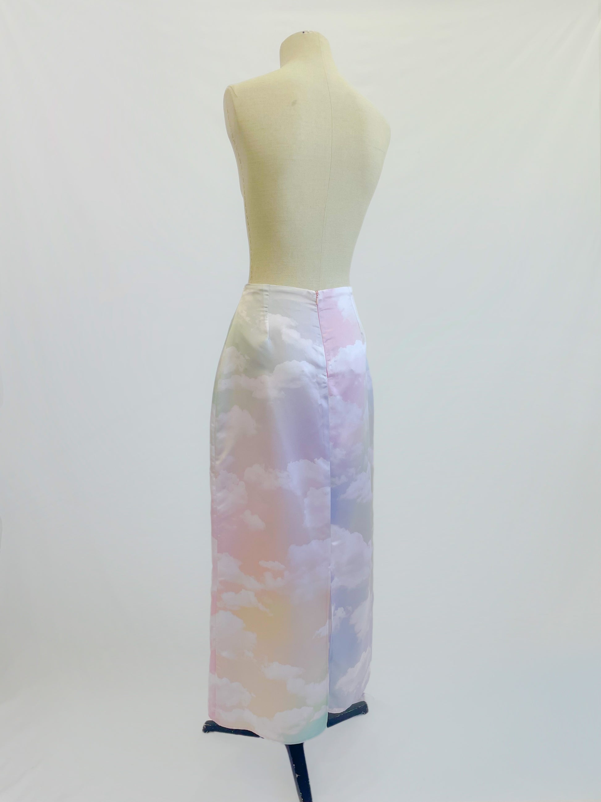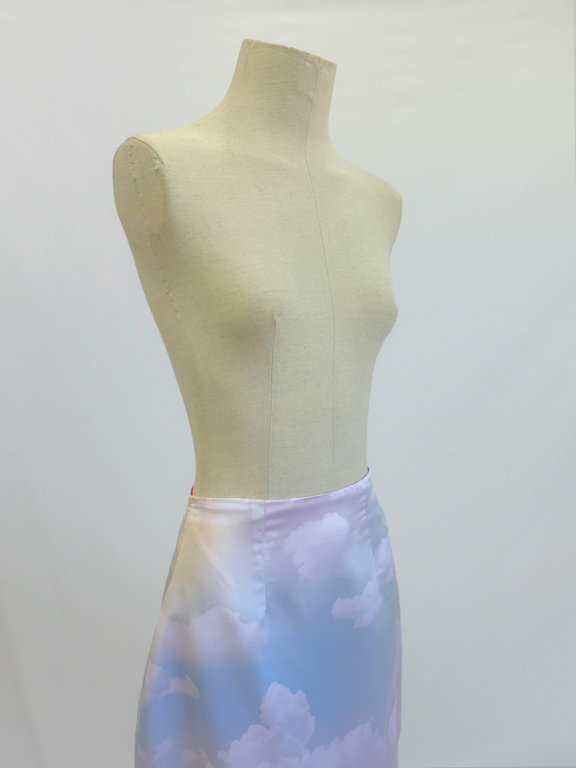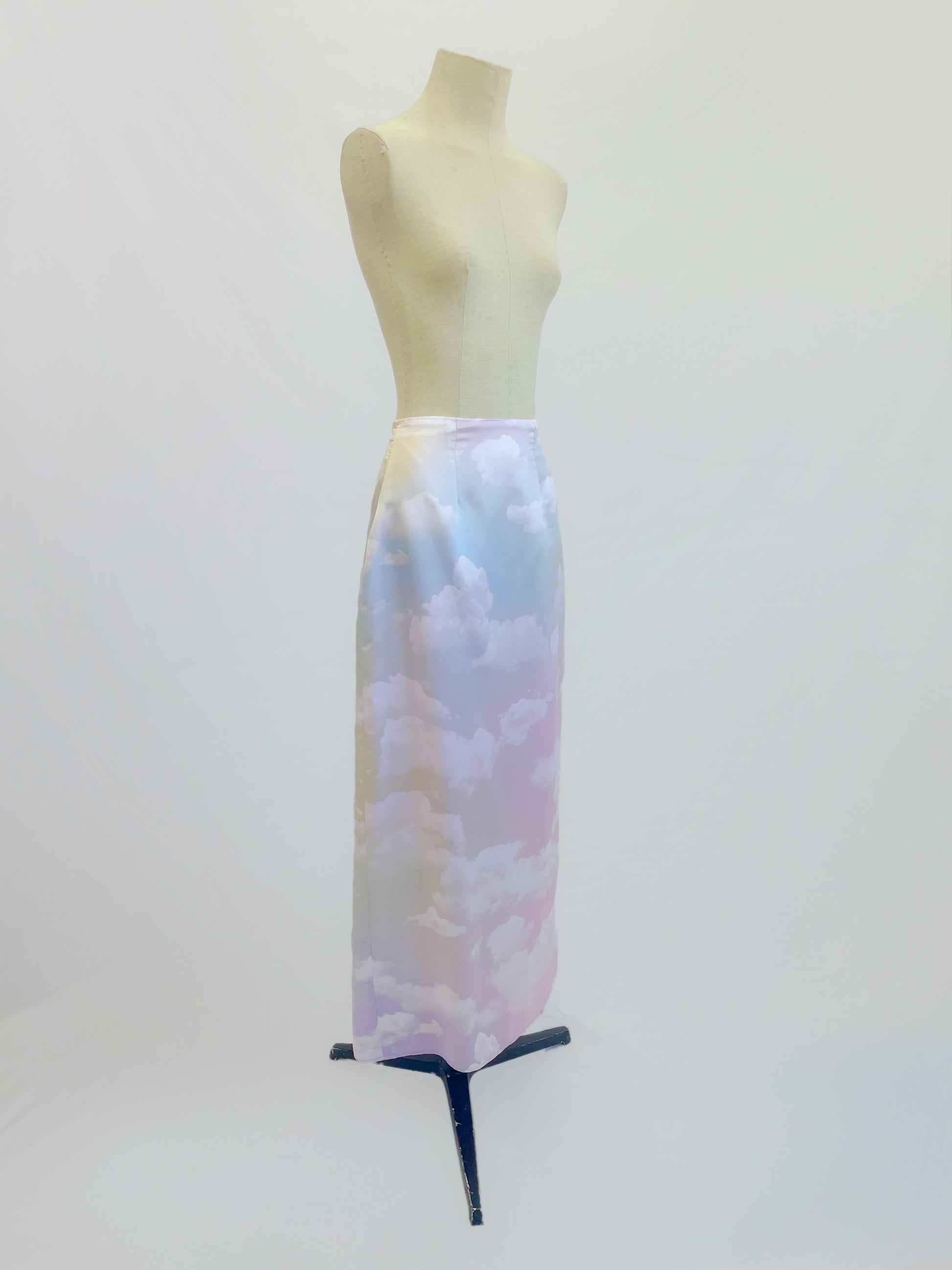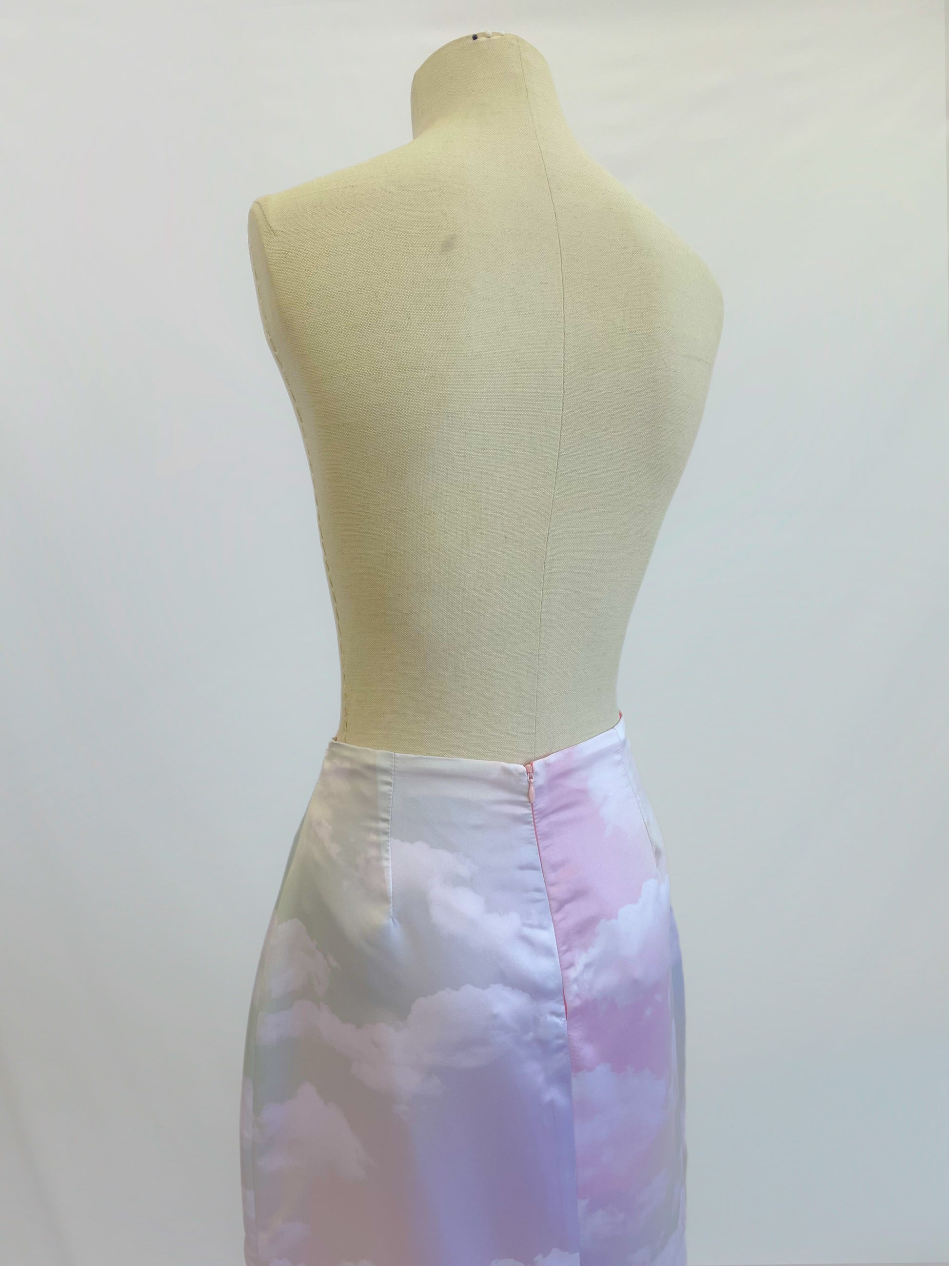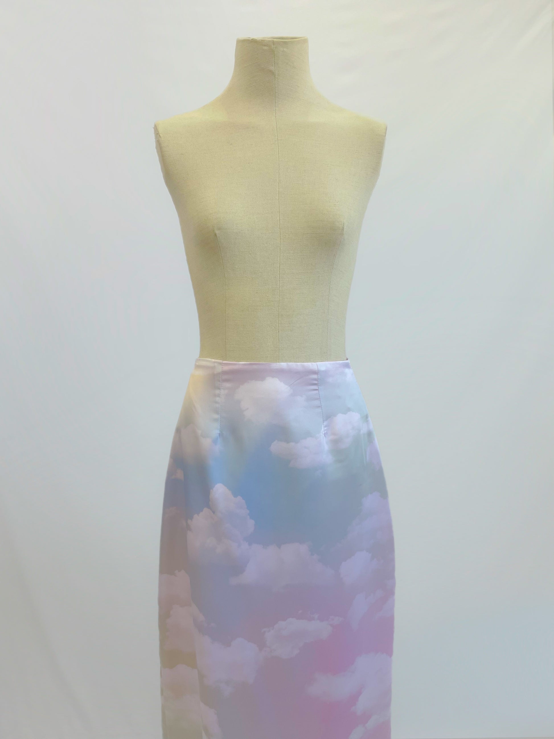 Straight cut with invisible zipper at the back and back slit for greater comfort while walking.
