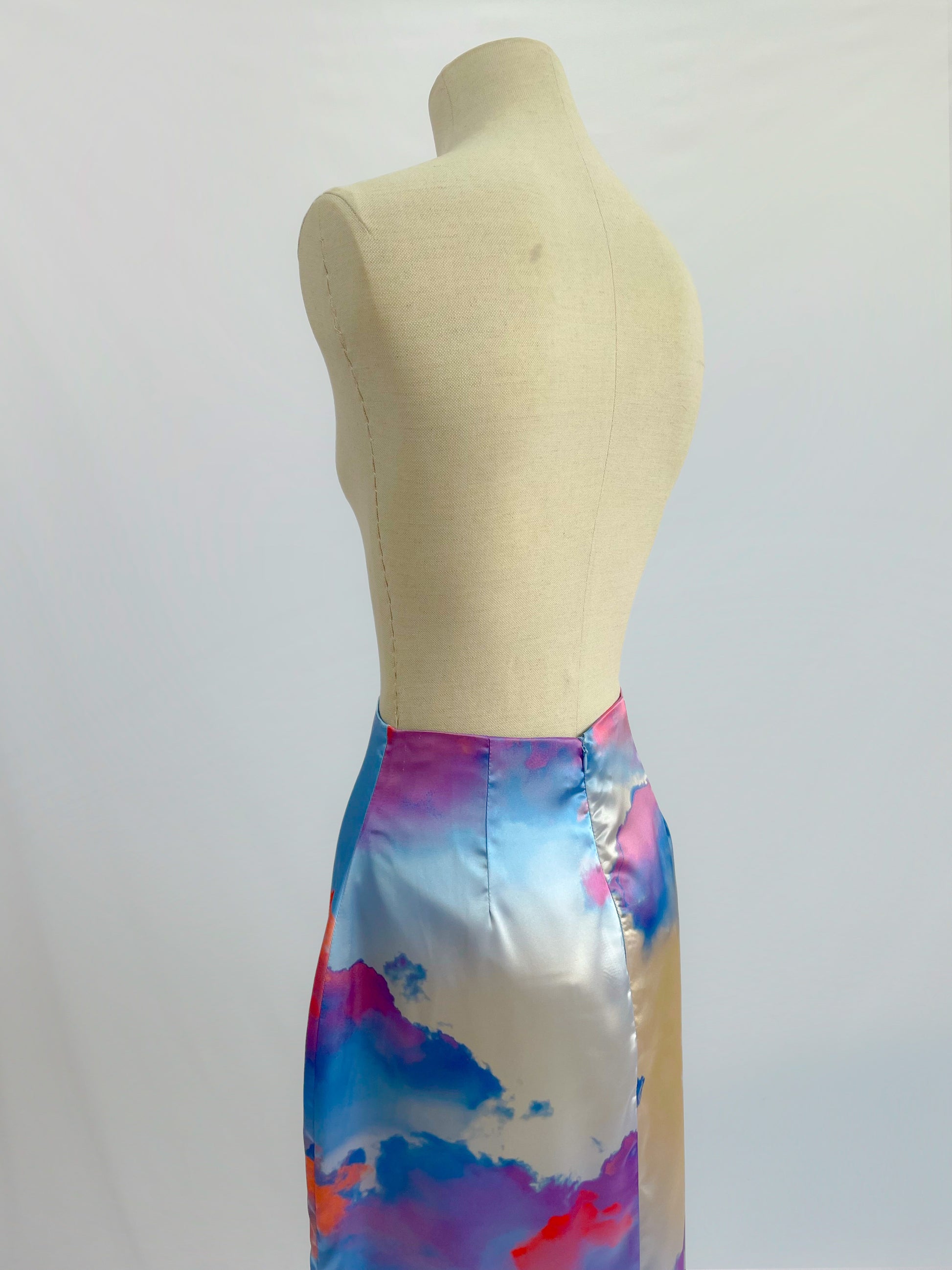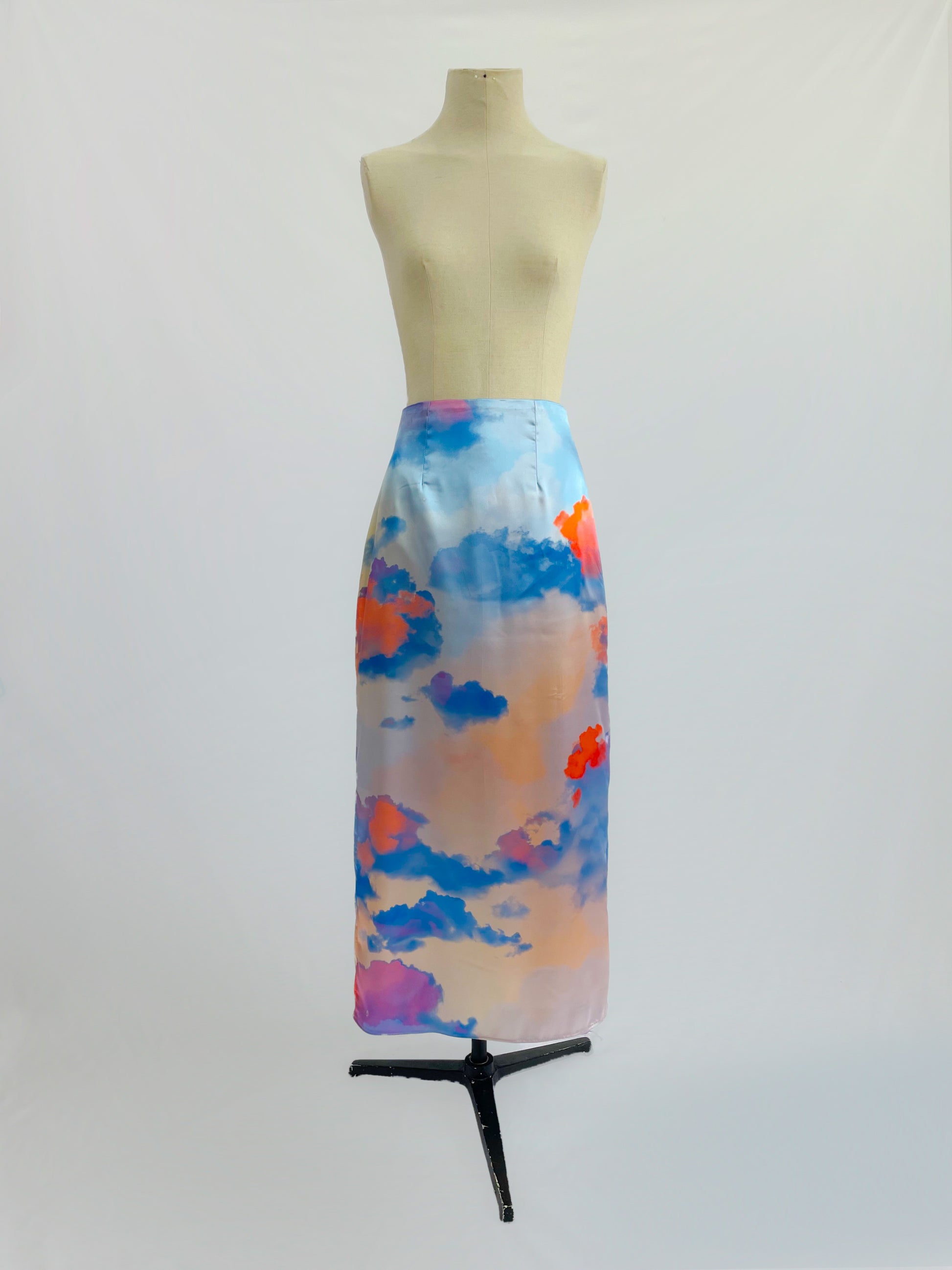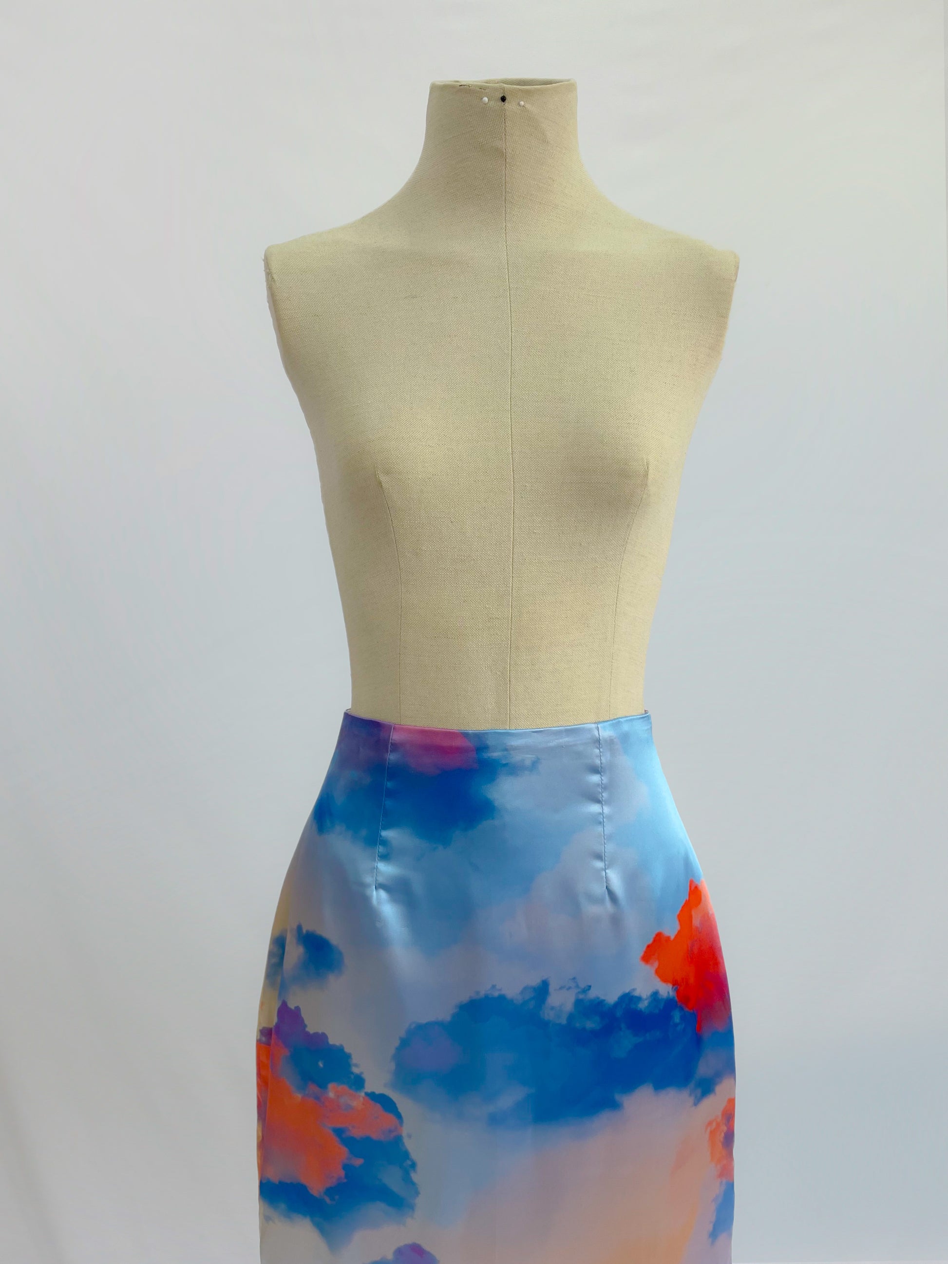Straight cut with an invisible zipper at the back and a back slit for greater comfort while walking.