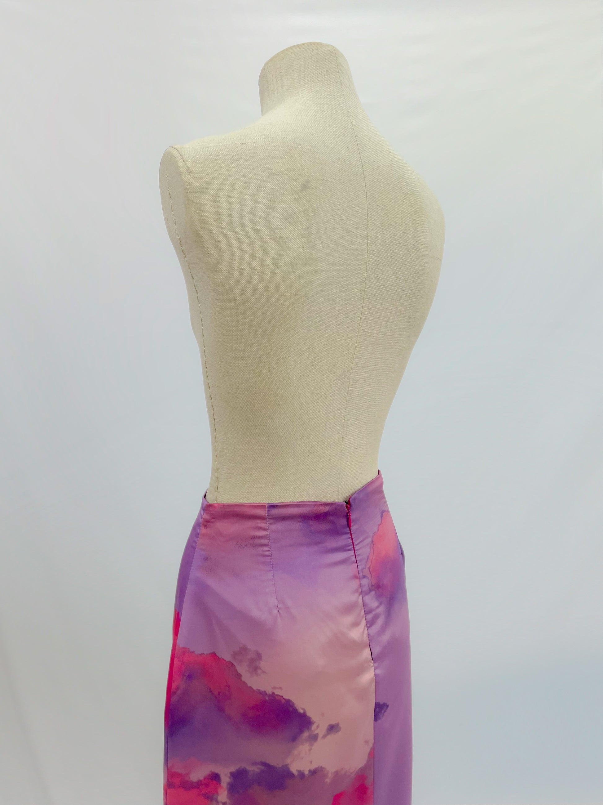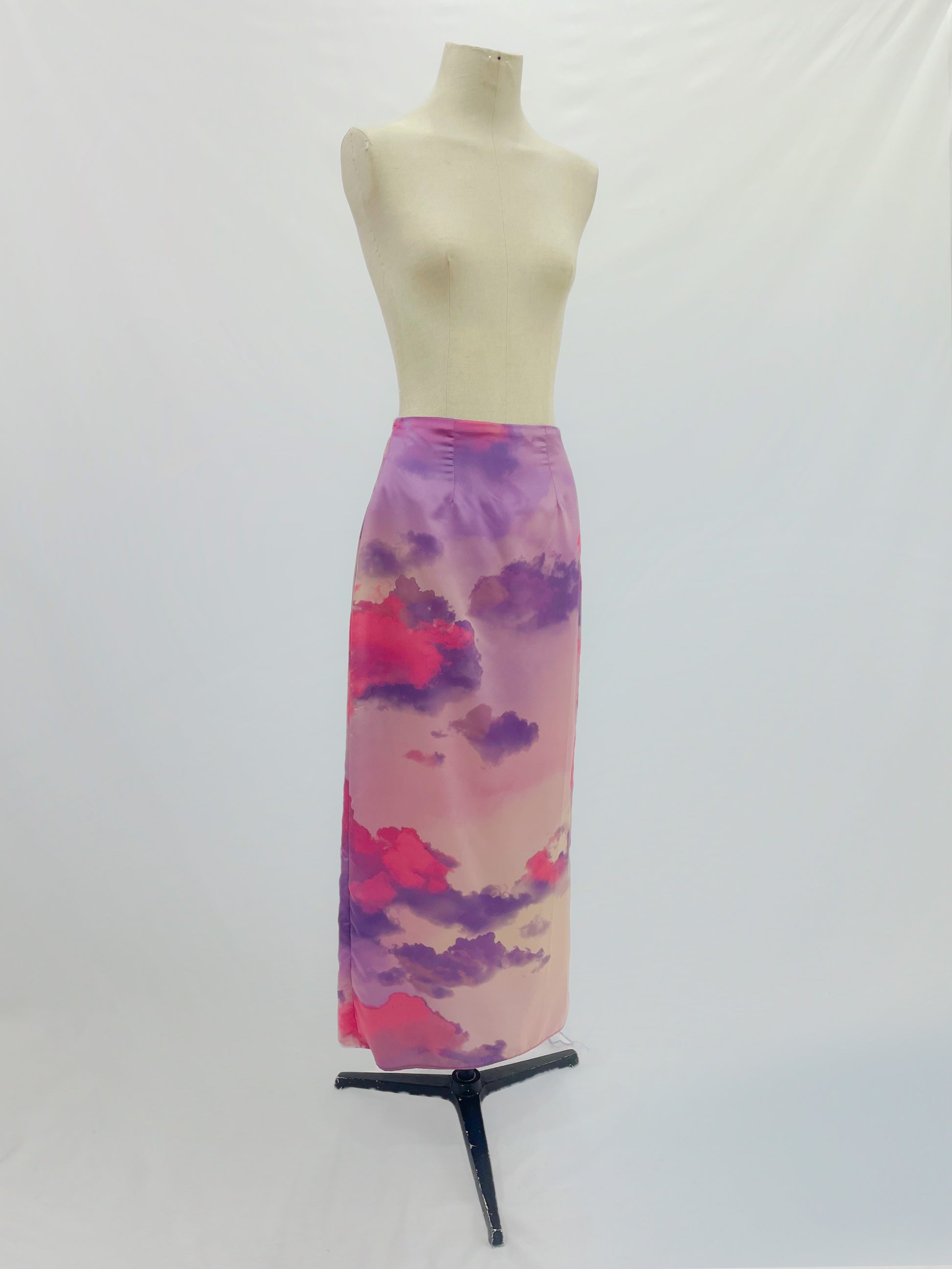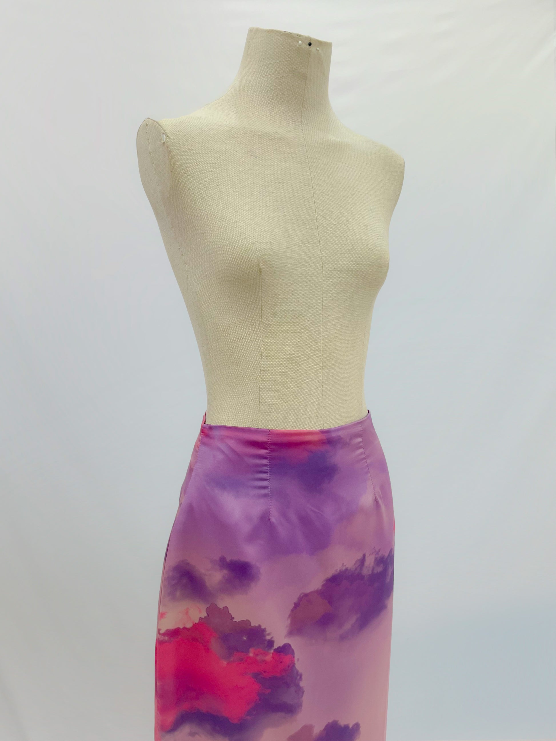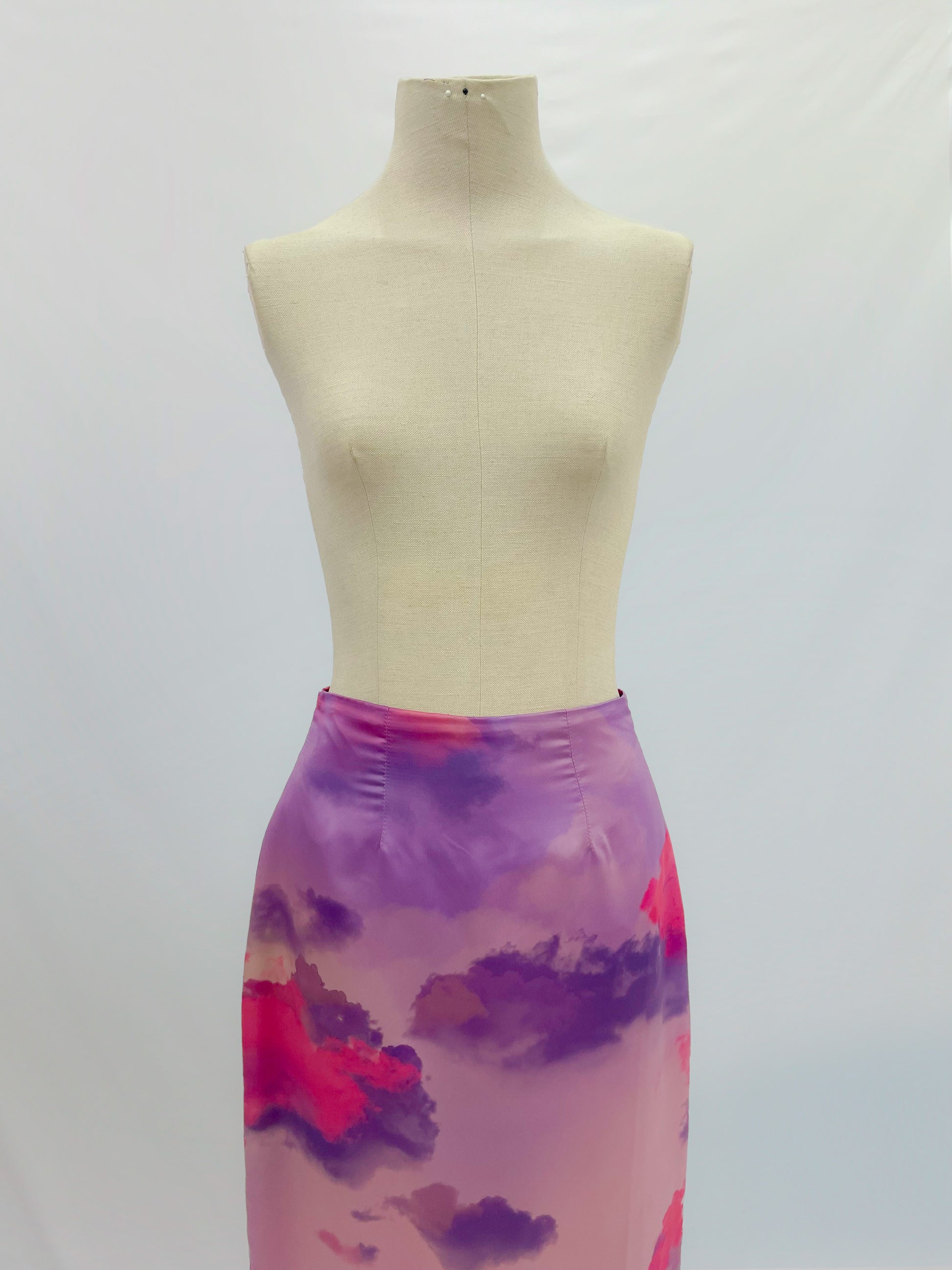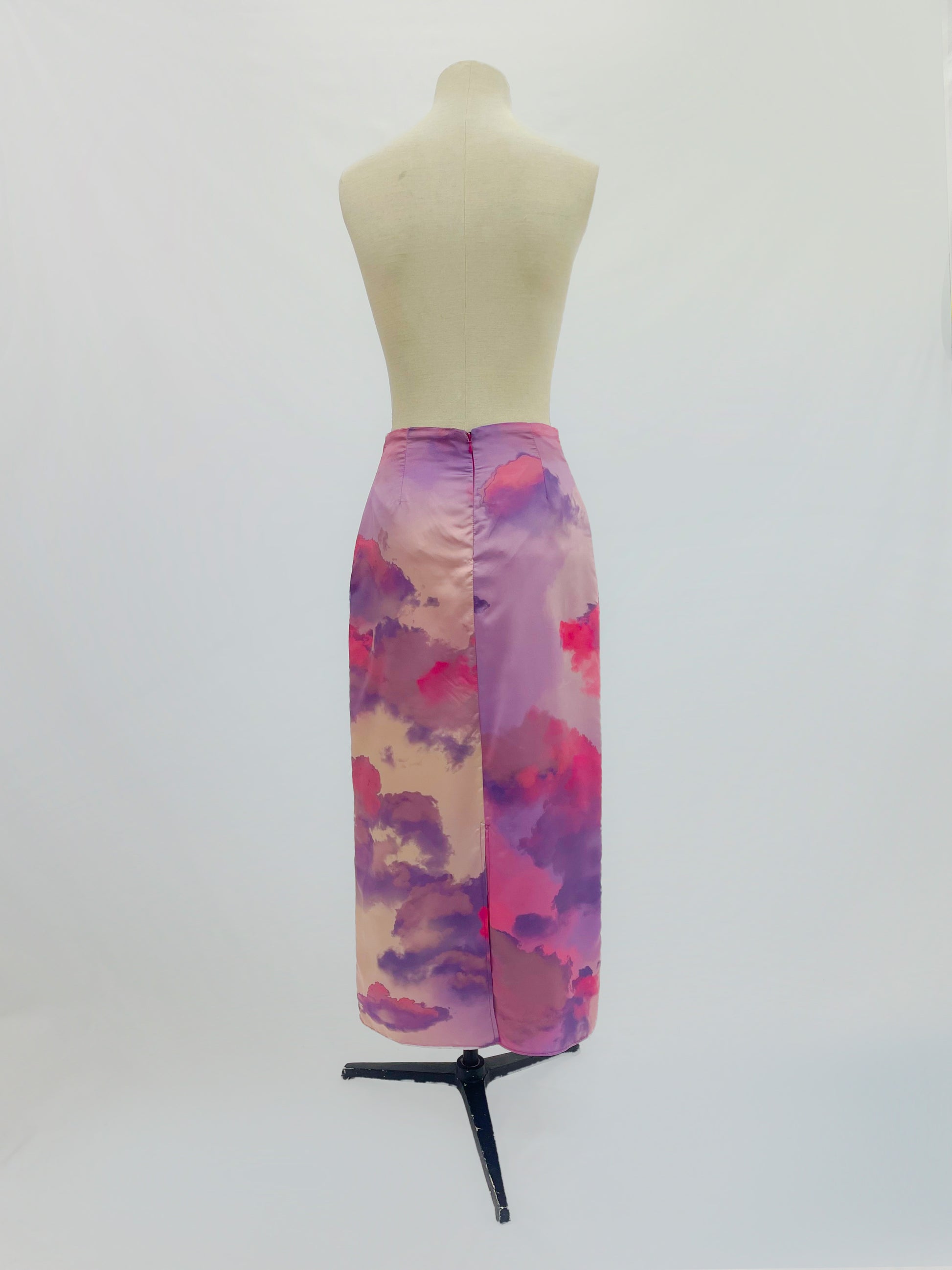 Straight cut with an invisible zipper at the back and a back slit for greater comfort while walking.