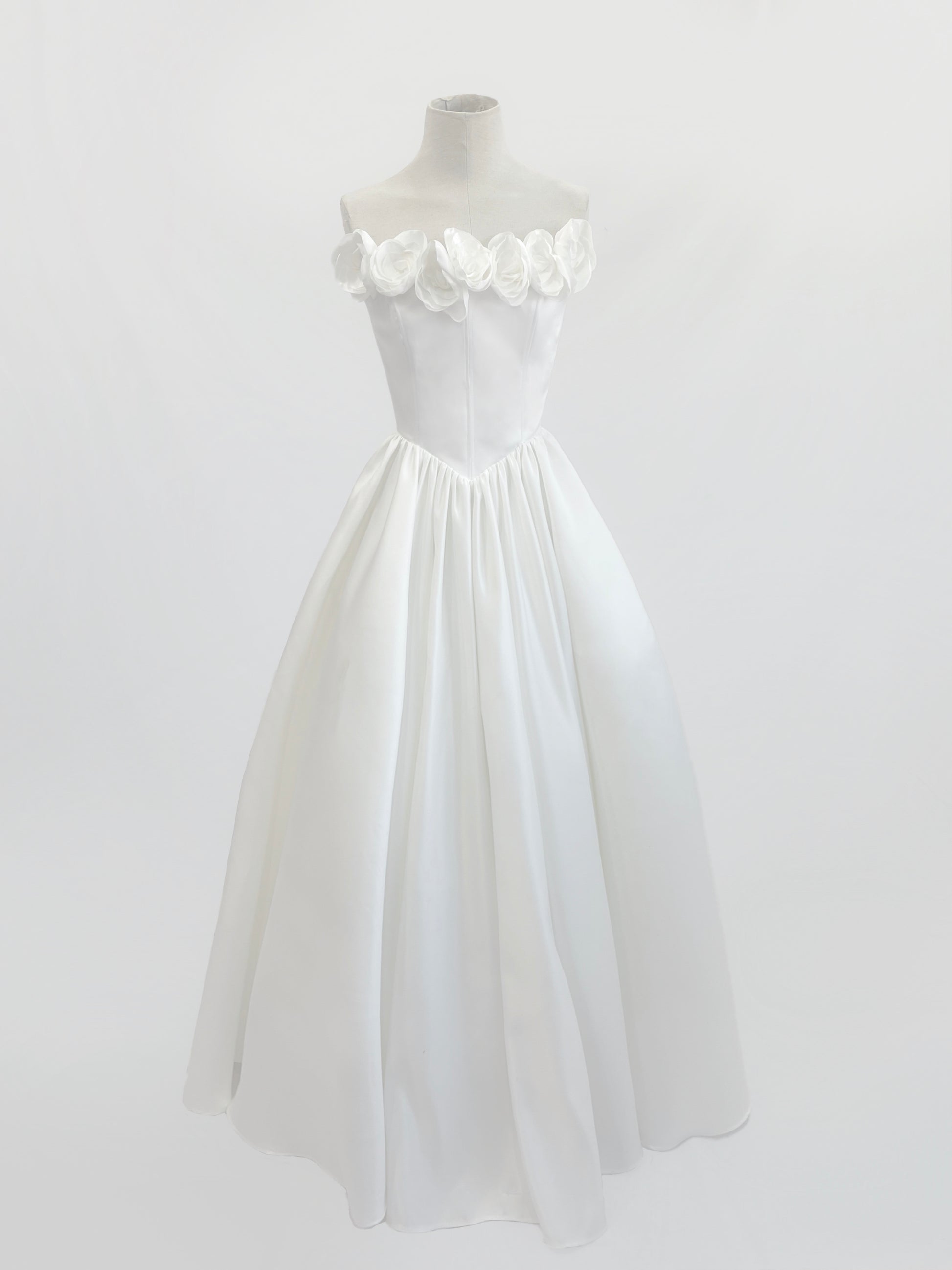 Composition: Satin dress. Lining: American-style lining. Satin flowers.