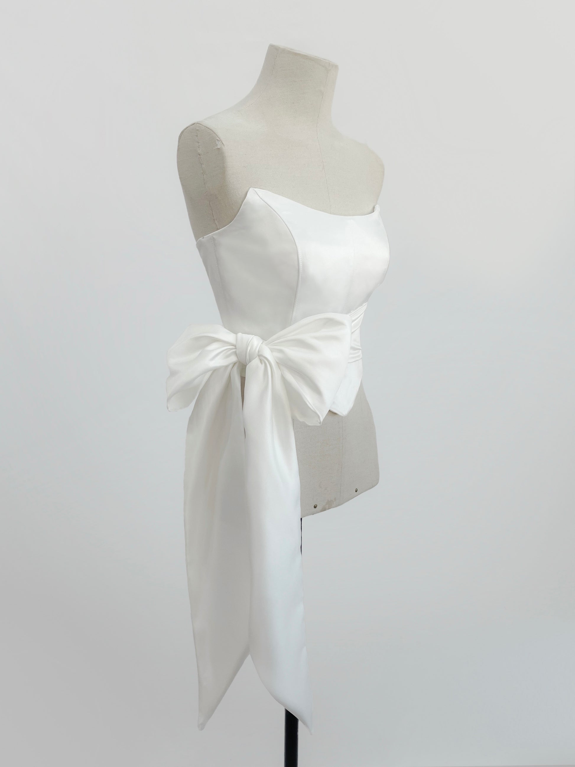 On one side, it has two 140 cm straps, each designed to be tied in bows and give a feminine and distinctive detail.