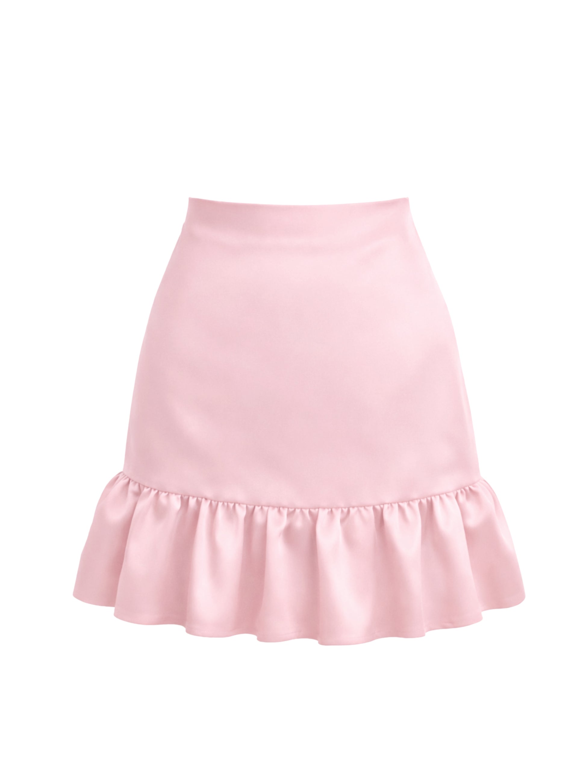 High-waisted skirt made of satin. It features a clean cut with a ruffled hem that adds movement.