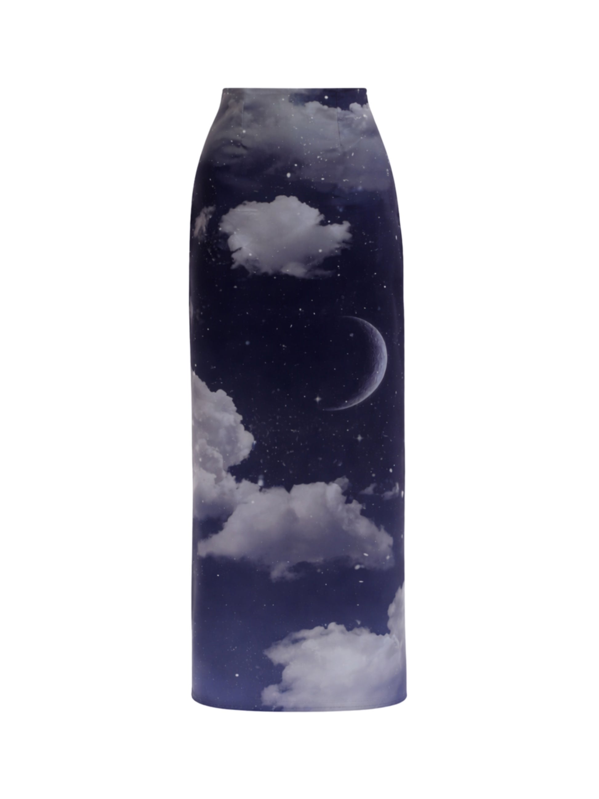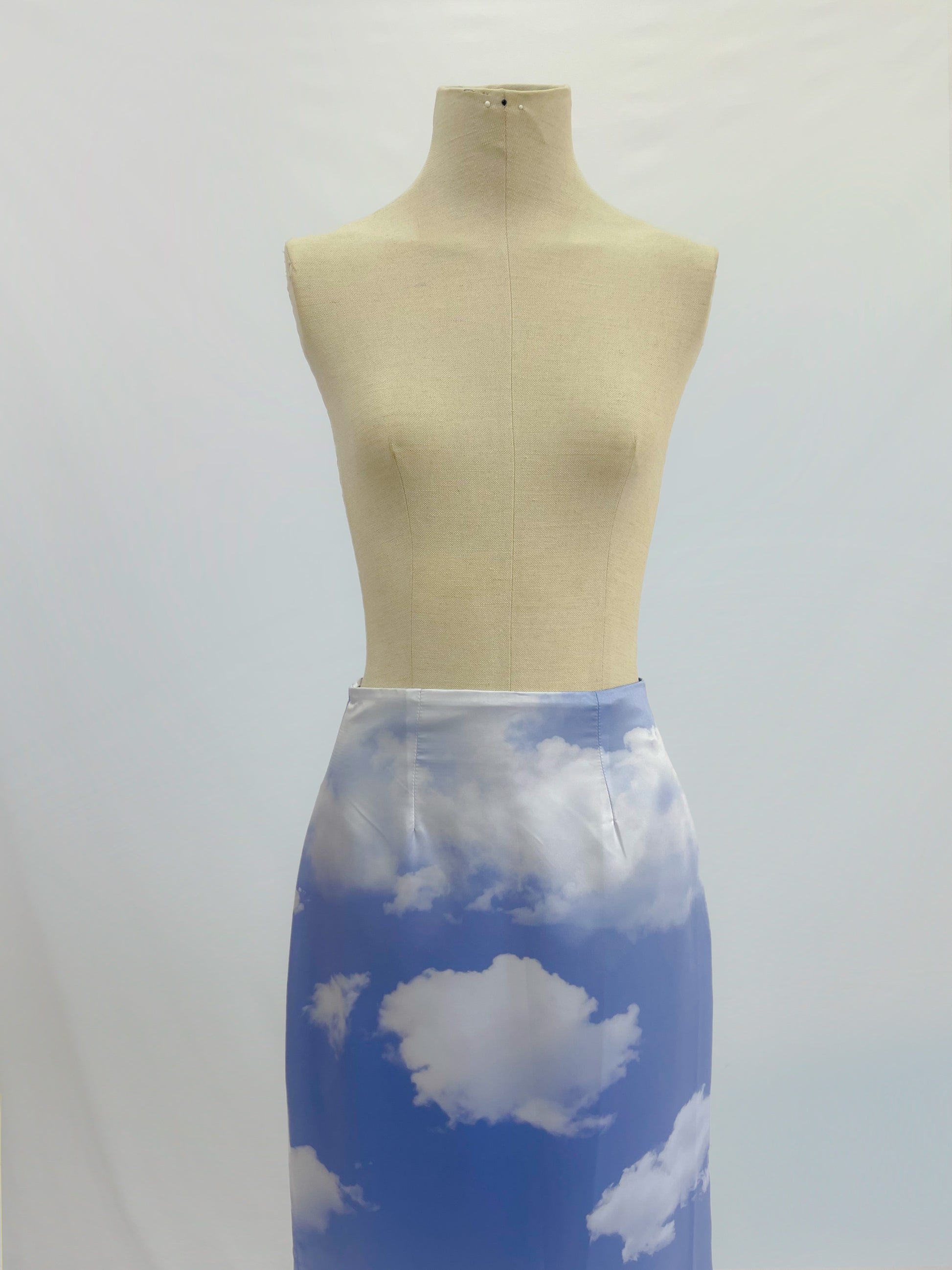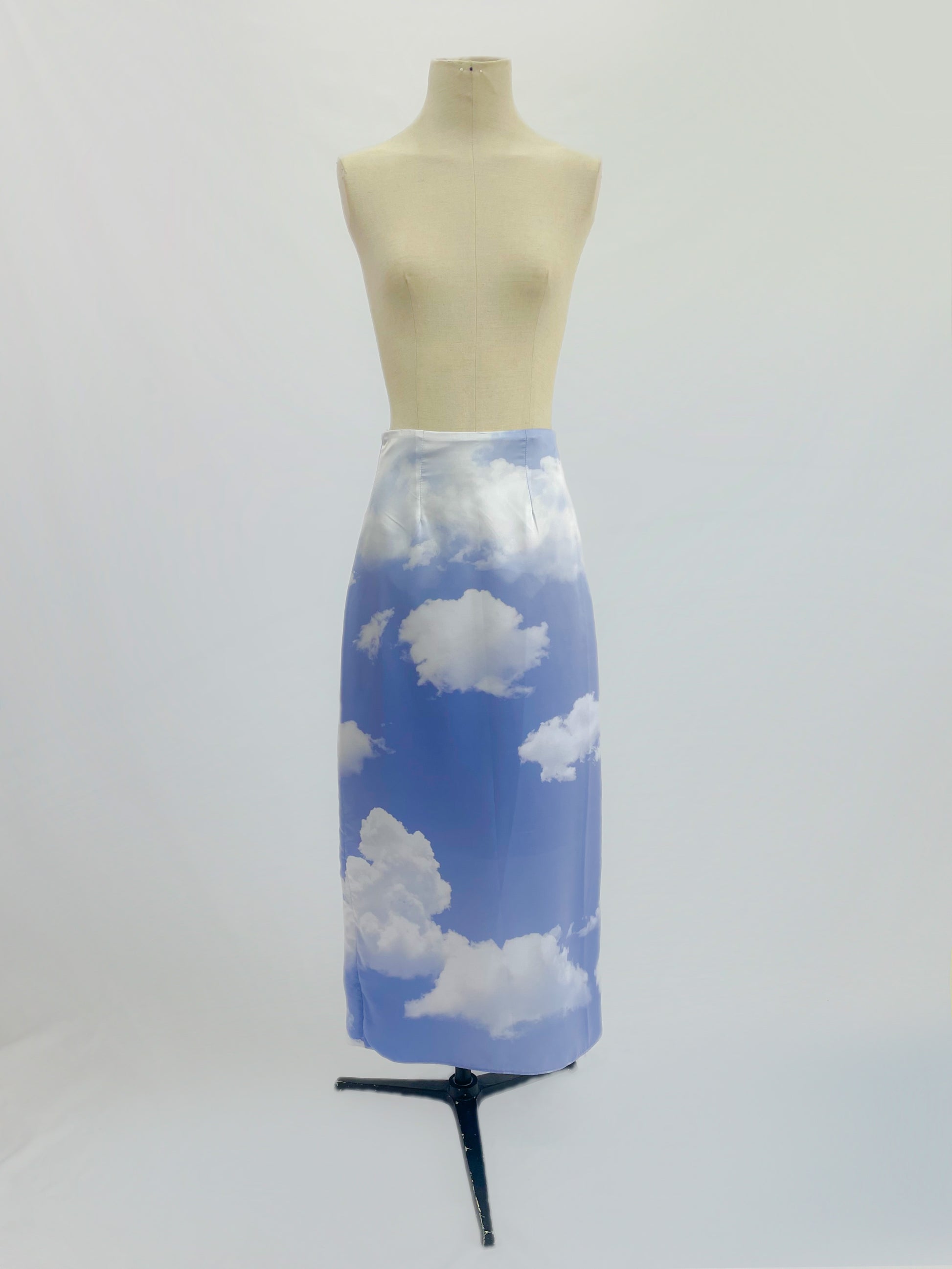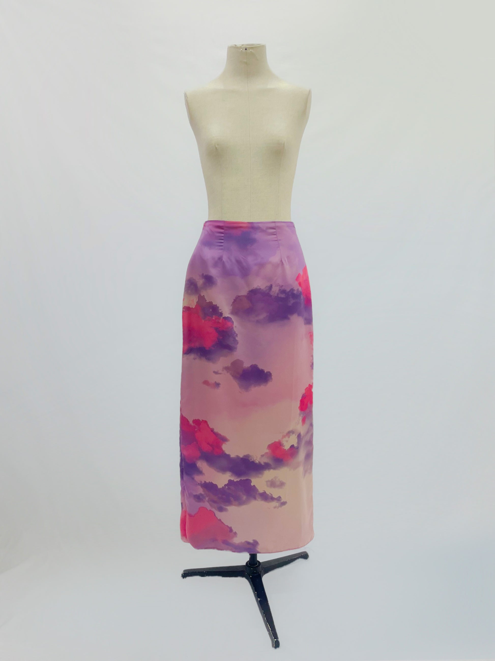 Straight cut with an invisible zipper at the back and a back slit for greater comfort while walking.